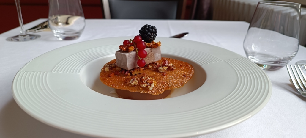 Une cuisse de canard des Dombes confite à la perfection, accompagnée d’une purée onctueuse de panais, une rencontre de saveurs succulentes et de textures délectables